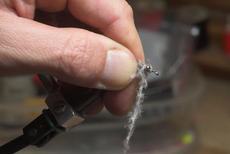 Work more dubbing onto the thread and form a fairly voluminous head. Make sure the eyes are still visible
