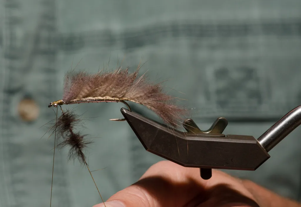Insert a small bunch of hair into the loop and spin to form a hair hackle