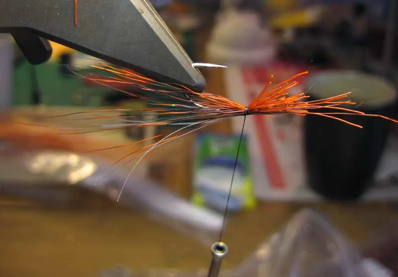 Tie in a small bunch of the dark bucktail. This will actually be the overwing when the fly is in the water
