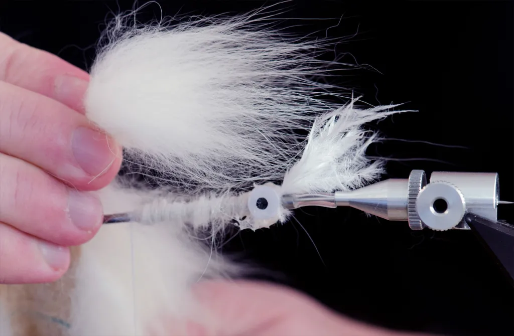 Grab a generous amount of white angora fur, long enough to cover the eyes
