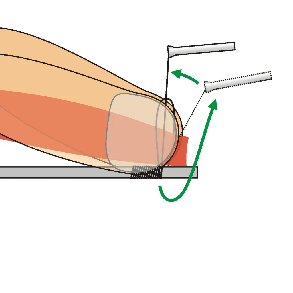 Pinch the thread on the rear side, leaving a loos loop over the material, and make another wrap under the hook shank, up on your side and move the thread in between the material and your thumb. The loop should now be right over the tie-in spot.