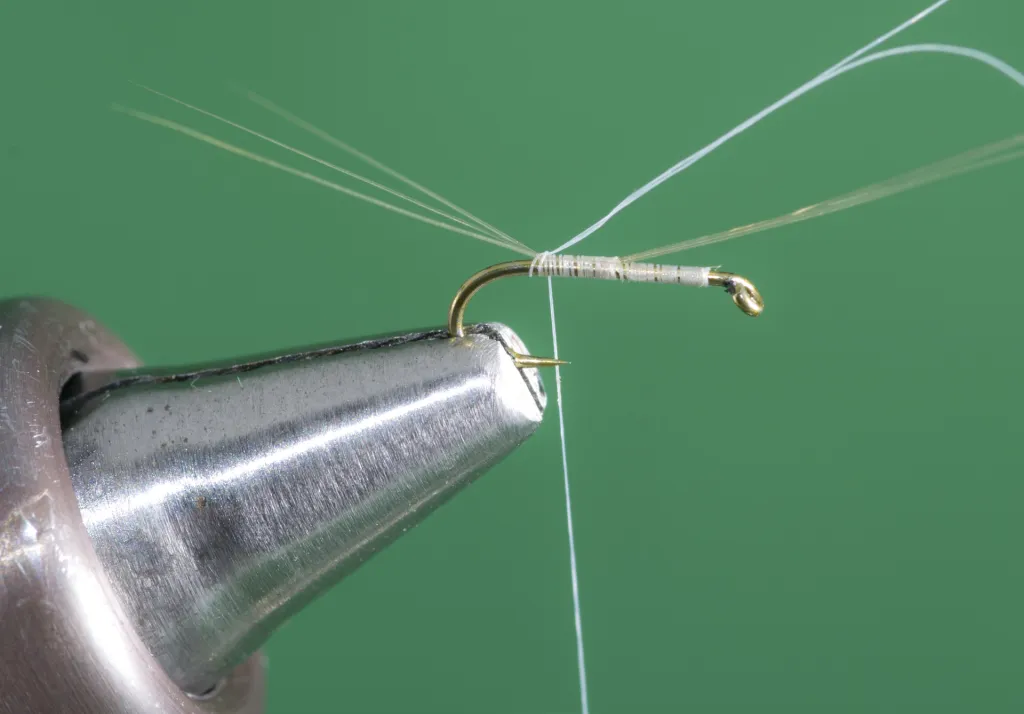 Pull both ends of spiderweb up forward and fix them with some turns of your tying thread.