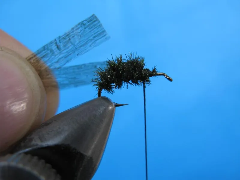 Cut two stripes of Roman Moser Plastic Raffia Sheeting Lt. Dun with a scissors and make them look like the wing of he real insect.