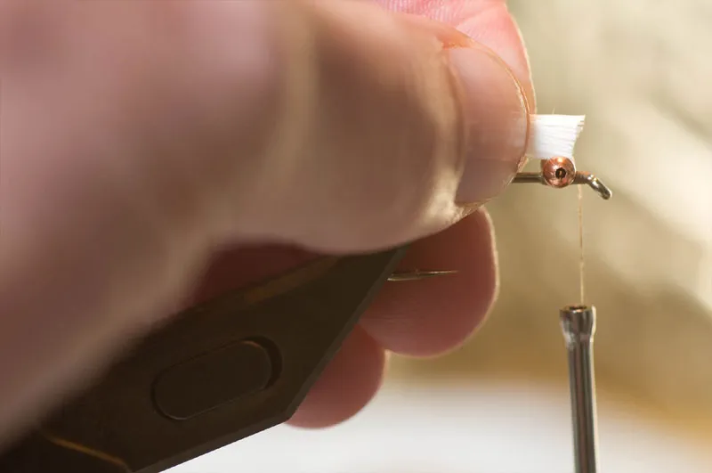 Trim the bucktail before tying it in so that you can cover it fully with tying thread