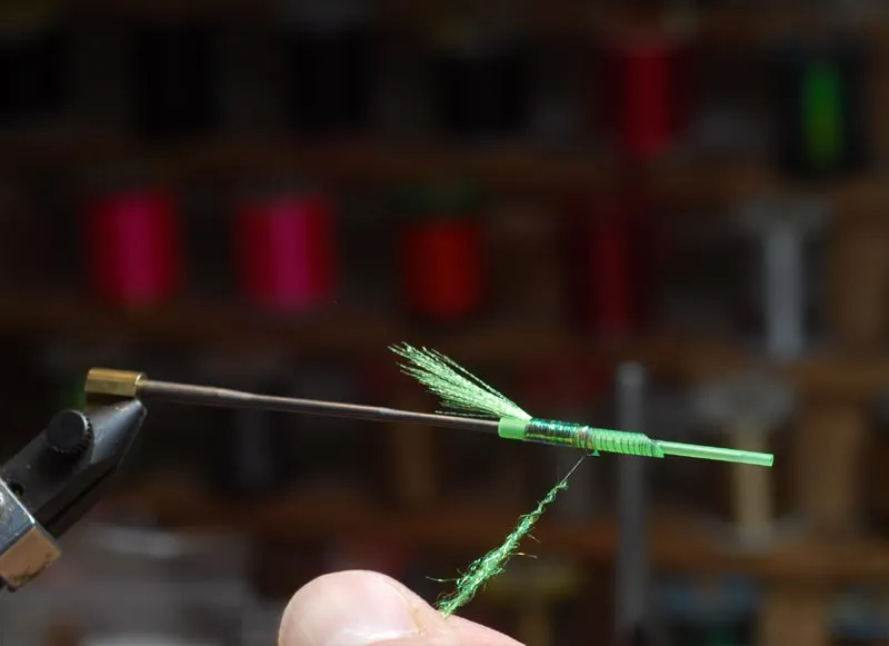 Twist some dubbing on the thread and start building up the body. Use the dubbing sparsely and create the body in several layers