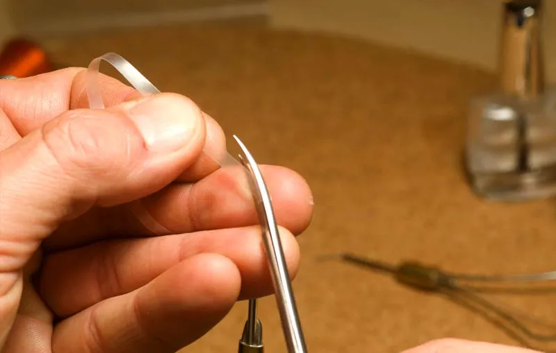 Prepare a narrow strip of thick, clear plastic by tapering it in one end