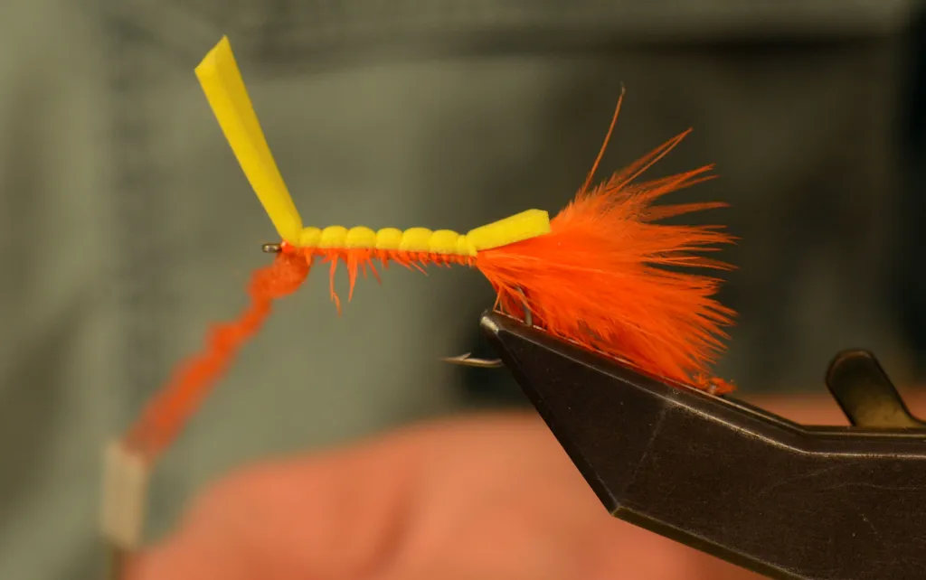 Add dubbing to the thread in an even noodle, long enough to cover almost the full body