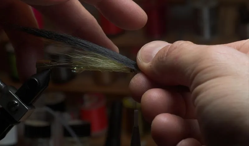 The black wing is tied in in two rounds - a shorter section first. Notice that it's fairly slim
