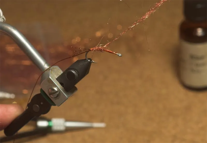 Take a turn or two backwards over the tail to start the dubbing, and wind forwards in touching turns