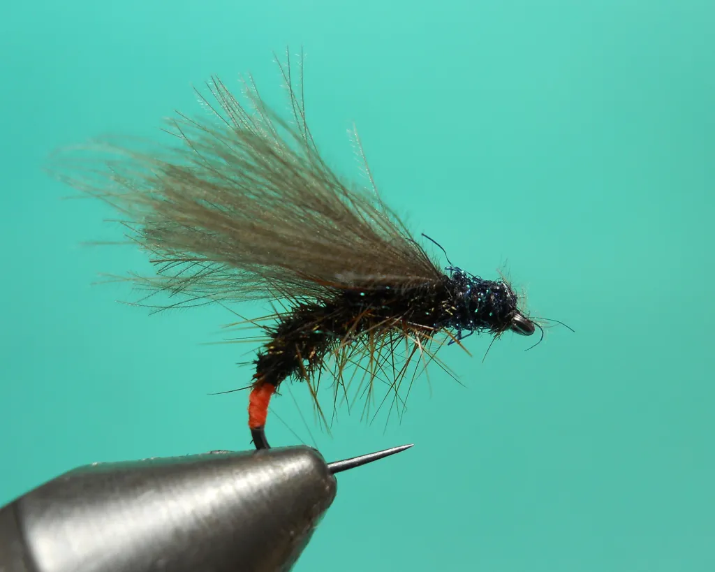Tie the 4 CDC feathers in to match the size of the hook. Tips of CDC protruding a little past bend of hook.
