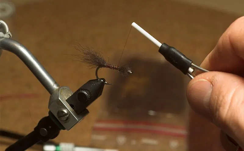 Cover the butts with an even layer of thread and wind the thread to the rear of the shank. Trim the butts if they protrude over the hook eye.