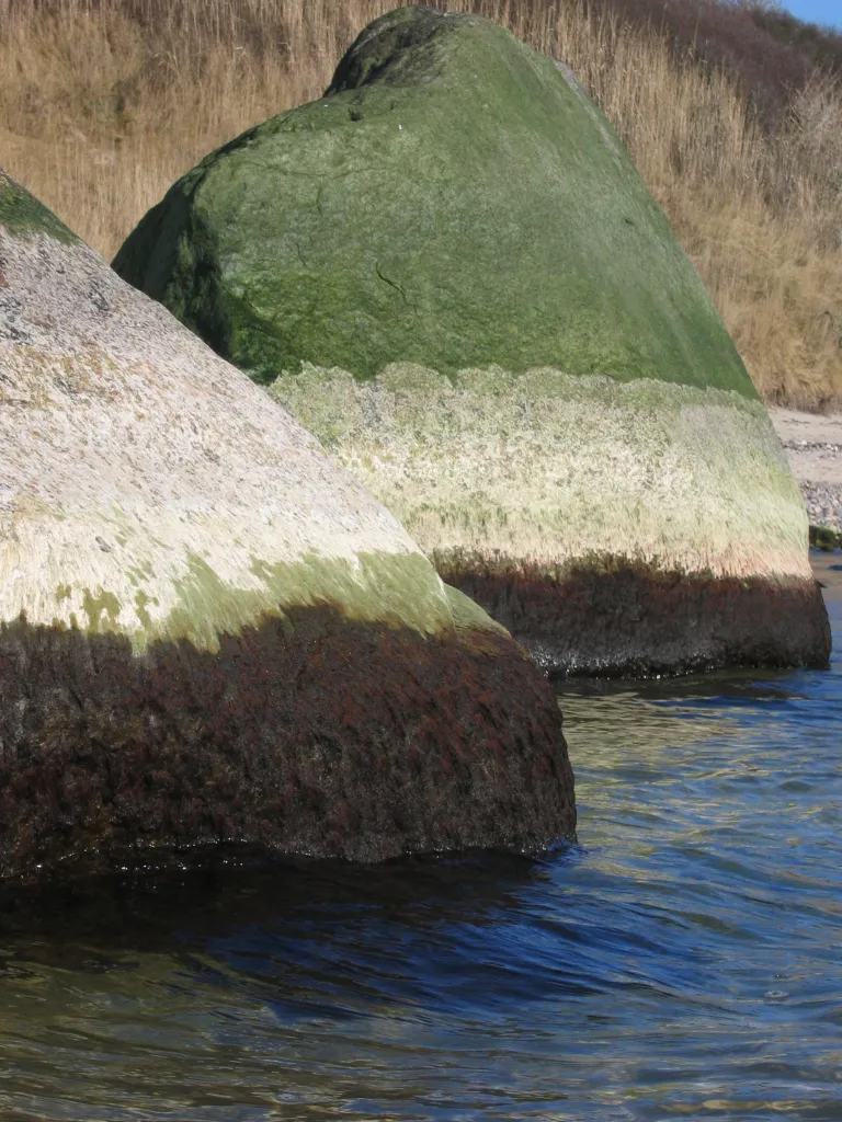 Tidal lines on the rocks form a beautiful pattern.