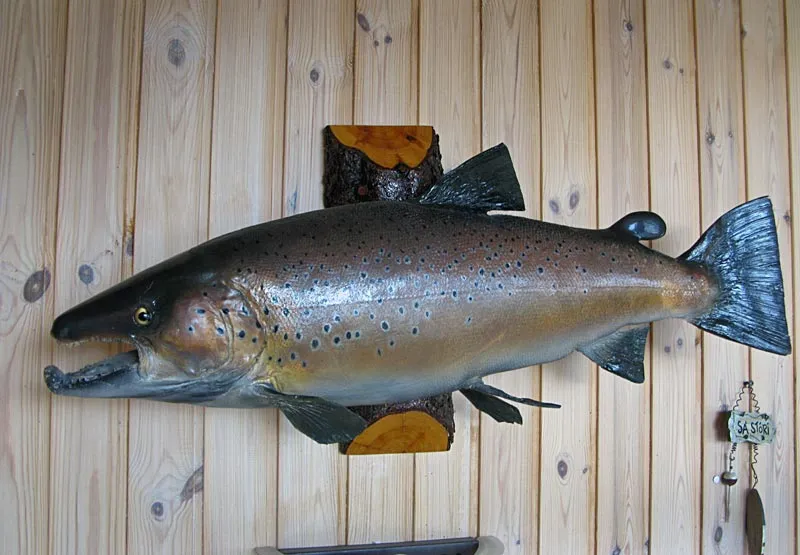 A fish stuffed in more than one way. At least 10 kilos or 20 lbs.+ and found on the wall of the lodge on Milnivallalaekur