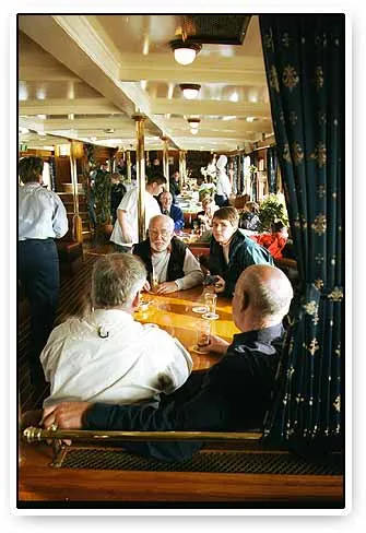 A number of the foreign flytyers dining in the beautiful salon onboard the restored steamship Success after Fly Fair 2000