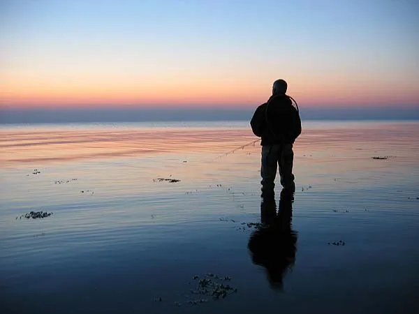 The sun sets on friend Lars, who fishes with light spinning gear - a very efficient and fun way of catching sea trout.