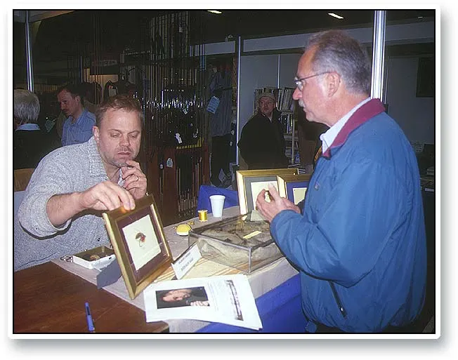 Sven Holm and Marvin Nolte - probably discussing salmon flies. Notice that Sven ties without a vice.
