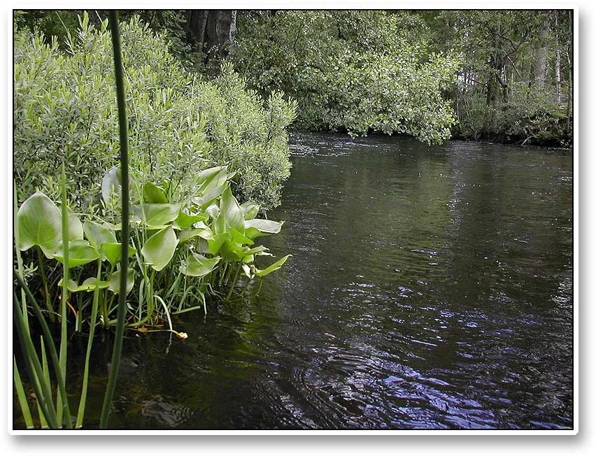 The bush on the left is a Sweet Gale (Myrica Gale), which releases its aromatic smell all over the stream. The leaves are used in Denmark to produce a delicious snaps by the same name as the bush in Danish - porse.