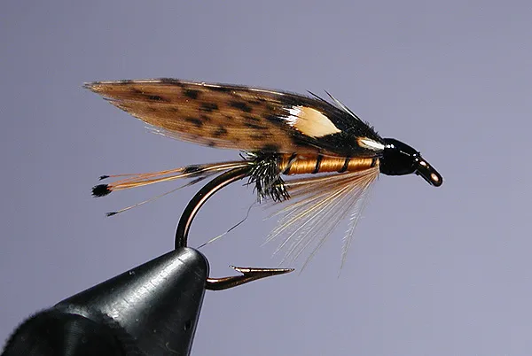 Here again I made use of speckled hen wing quills in place of the traditional mottled turkey. Don't they look nice? This is a real pretty fly. Not flashy, but certainly not dull by any means.