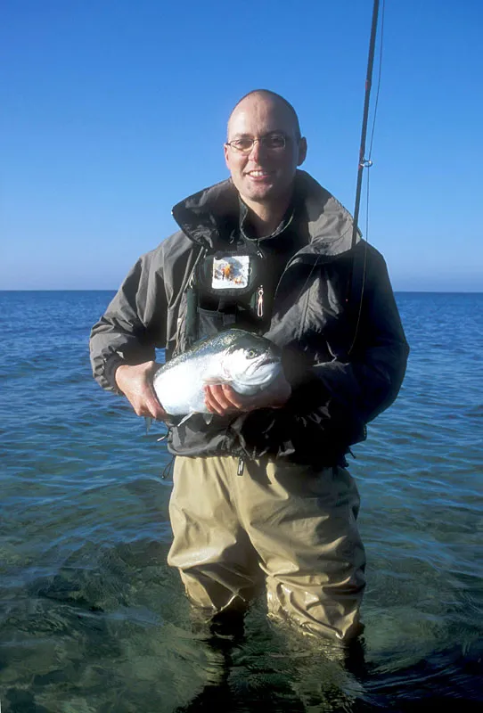 GFF partner Martin Joergensen with a large sea run rainbow trout that could not resist a small Klympen.