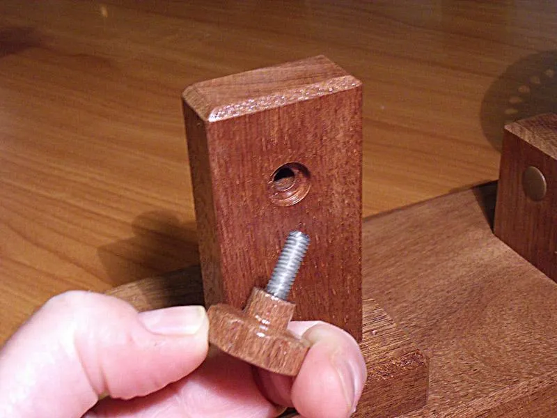 Made of mahogany and a bolt with the head cut off.