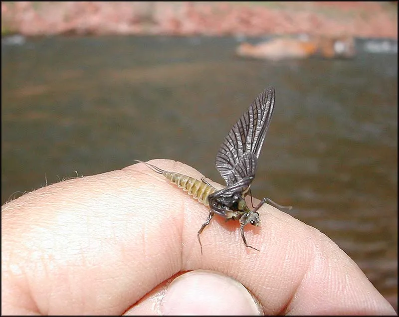 Hatches of large mayflies are common on the Pan. Steve fished this cripple off the water - a tasty mouthful to any trout.