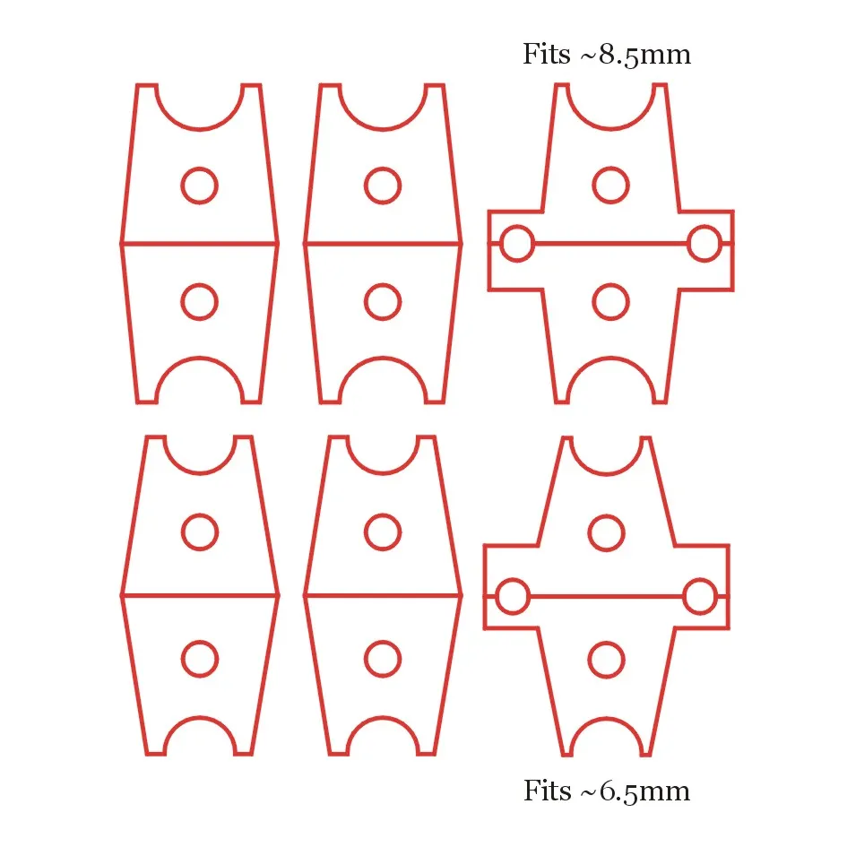 This drawing show the shapes of the material spring bases. For laser cutting you will need to download the proper files in AutoCAD or PDF format from the links in the article.