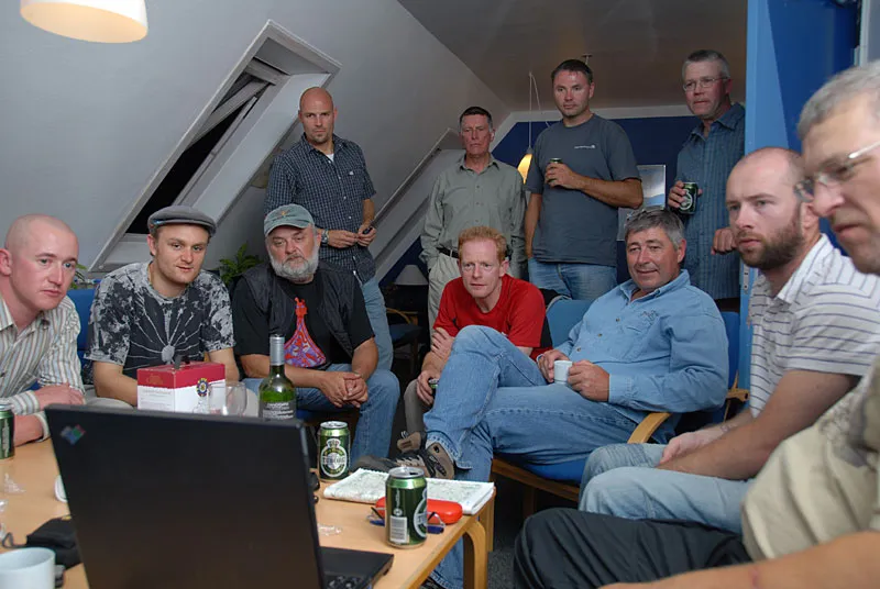 Gathered in front of the screen to watch the day's harvest of digital pictures