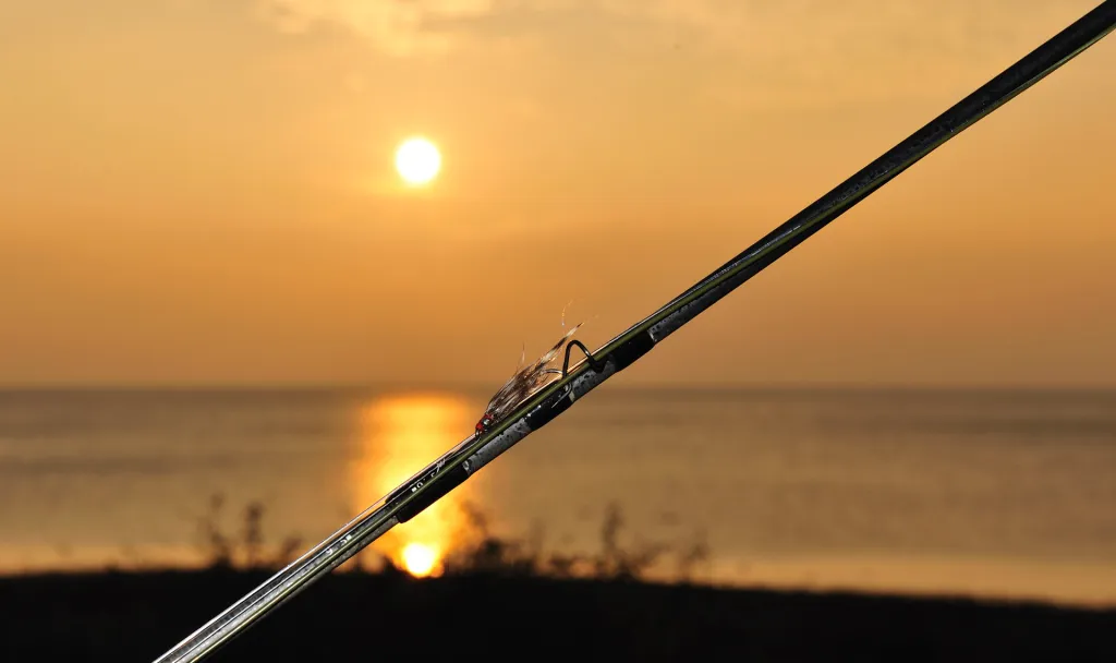This fly image uses the setting sun as a backdrop. A fill flash makes the fly visible rather than a silhouette