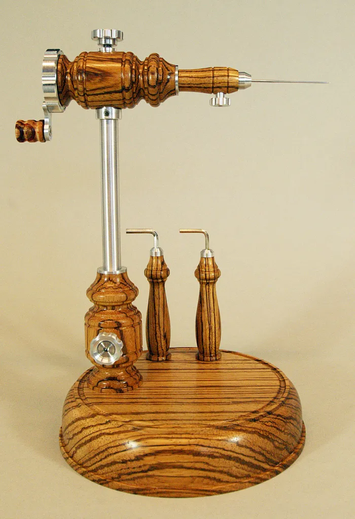 The tube-fly adapter in the vise, fully rotating.