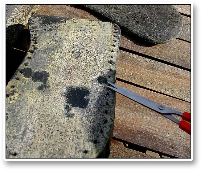 My Chota boots were both glued and stitched from the beginning, and I trimmed off the old threads with a pair of scissors before sanding.