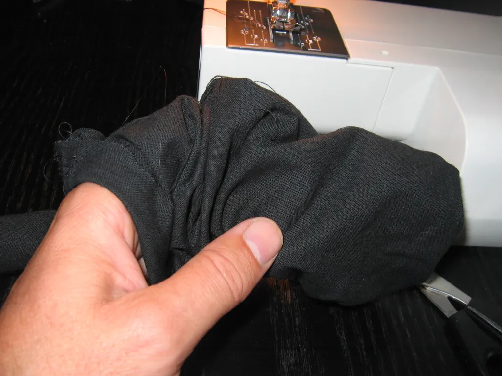 Once the full seam has been sewn, trim the surplus fabric (no too close to the seam) and turn the fabric tube back with the outside out.