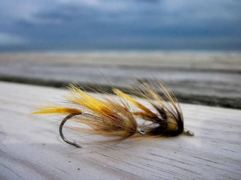This fly uses the yellow GP saddle feathers for the tail and the wing