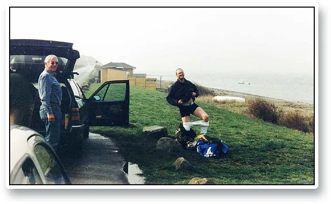 Bas watching Martin doing the undies ballet that any fisherman knows. Trying to change from waders into civilian, but not wanting to step on the ground can make anybody look ridiculous.