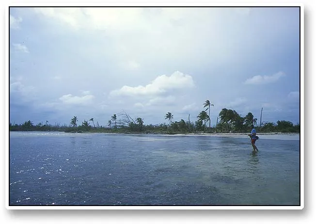 Jan wading a large flat north of the channel outside San Pedro. This area was very shallow and difficult to fish. We saw fish, but managed to snag of turtle grass in almost every cast no matter how light the fly. Bonefish do not like snags!