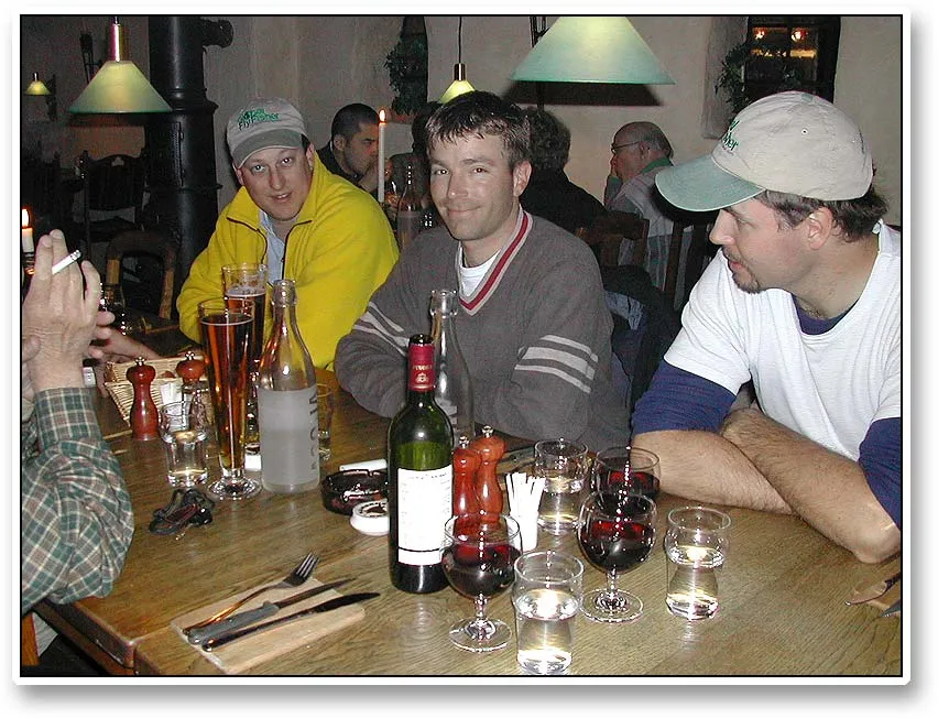 Steve, Sean and Kasper waiting anxiously for their steaks at the loacl steak house. This was the laste meal on the trip and the first meal out during the whole trip.
