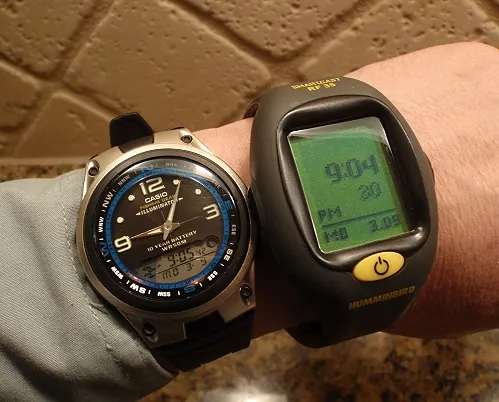 The RF watch/depth display unit is only slightly larger than a normal watch.
