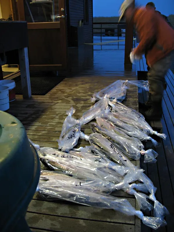 The nightly ritual at the lodge: weighing in all fish killed during the day, registering them in the books. You can register without killing.