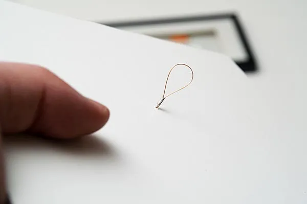 Pull the wire through the pearl to form a loop and then the tag ends through the background. Leave it slightly open like this.