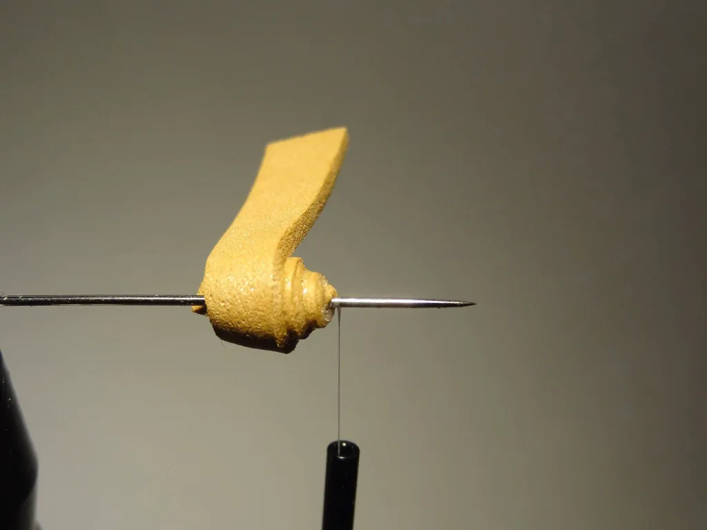 Wrap the foam in a spiral to form the house. Hold onto the tag until the glue sets.