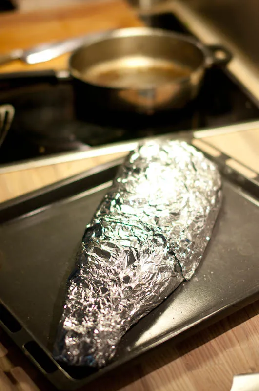 Wrap the foil tightly around the fish, and it's ready for the oven