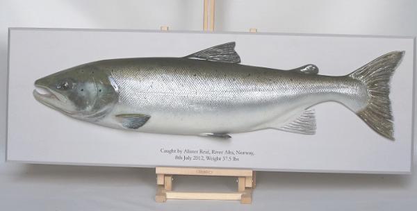 43'' Atlantic Salmon from Alta River, Norway. Basswood handcarved trophy style plaque.