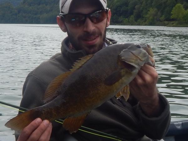 A friend and I were fly fishing for smallies in kayaks when this beauty hit. Gave a nice fight and even pulled the kayak a bit and made for an exciting landing. A nice fish on the fly. Plus its hard to beat fall bronzebacks.