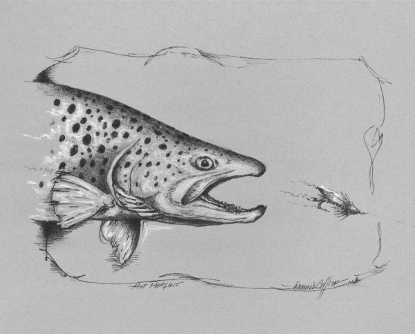 "Hot Pursuit" captures that brief moment in time, just seconds before the rod is nearly jerked from your hand by a big brown trout attacking the swinging streamer.