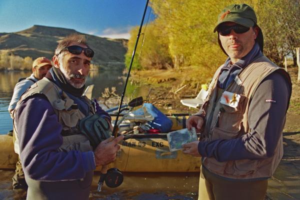 Javier y Juan Pablo,Collon Cura River,Patagonia Argentina,foto de Alfredo Romero.....Nikon f70,GA nikon 28 2.8 afd,Polarizer Filter Marumi.......