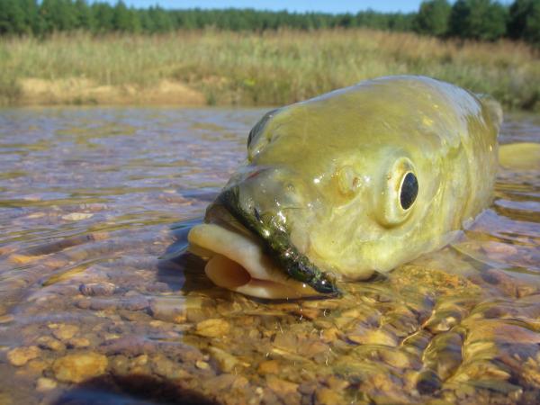 Natal Scaley (Yellowfish) caught on a dragonfly nymph