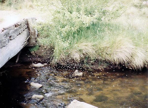 This white cloud holds the promise of late afternoon action on this small snowline stream. Scanned from old 35mm photo.