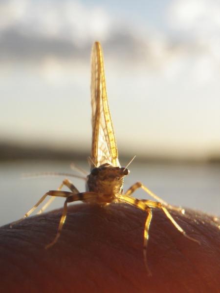 trout candy from Limay River. A medium size mayfly for this place, letting sun light goes through it