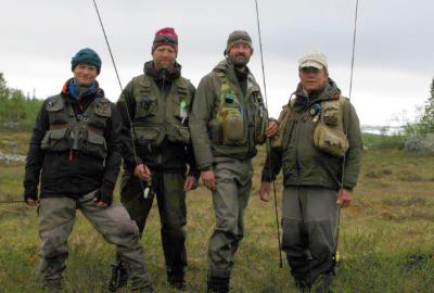 but Peter’s two fly fishers I’d not met before, quickly became very good email friends as we exchanged information and friendly fly fishing banter. One thing about a first world country like Sweden is they have websites for everything with all the information about anything. We watched the weather daily for 2 months before our trip. For a South African, it was frightening with daily temperatures of minus 10 to 20 degrees C, snow, wind, rain. Every now and again, the temperature would rise to minus 5 or even to ZERO and then dropped again. As the end of June approached, I became increasingly worried about freezing to death in Southern Lapland. There is even a website in Sweden that tells everyone when Summer is due to arrive in one’s area. The Swedish definition of Summer’s arrival is "SUMMER is when there are 5 days of continuous temps above 10 degrees C." 5 days of temperature above 10 degrees? That would be a freezing time in South African terms, but for the Swedes it’s a glorious momentous date. Summer has arrived! Daily checks a month before the trip indicated that we would not be doing a summer fishing trip.