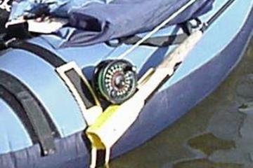 The Float-n-Tote rod holder straps on easily to the pontoon of your float tube.