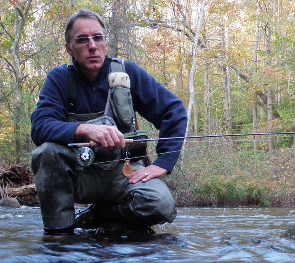 b. 1964 - I have been making art, mostly functional steel, for over 25 years now but it has been in the last 3 years that I finally figured out how to combined my 2 passions - fly fishing and metal sculpture. With my artistic tying I try to create forms that hark to the history of the craft yet strive toward it's future. Like all my art, the flies I tie are snapshots of what is going on in my life. I look to the world around me both above and below the water for inspiration often finding "reasons" for a fly in a piece of music, an event or people I meet. It is important for me to strive to be different with my artwork and once a fly has left my vice I won't tie it again. Titling my artwork is important too. The first part of the fly title is the name, the next number to the right is the month and then year it was made, next comes the metal used (S=Silver, SS=Stainless Steel, B=Brass, N=Nickel, GF=Gold Filled) and the last letter is (P) for Prototype, (A) for as drawn in my sketchbook or (R) for revised. Sometimes I use a metal for its color alone and sometimes due to the way I can work it to achieve what I want it to do in the fly. As far as fishing goes I chase trout and Striped bass whenever I can and hope to instill a love for nature and all thing aquatic into my 2 young sons as life allows.